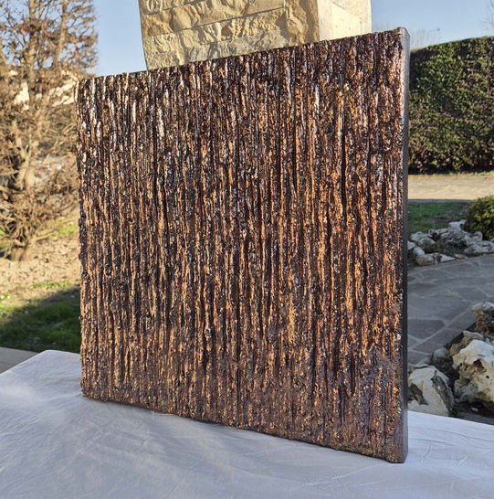 Rather than simply reflecting light, the surface holds it—drawing the viewer into a contemplative experience where texture becomes landscape and material becomes presence. This work evokes both elemental richness and quiet sophistication, making Bronze Lights a compelling focal point for interiors that value luxury, tactility, and nuanced elegance. Whether placed in minimalist, contemporary, or industrial‑inspired settings, it harmonizes with architectural spaces while asserting its own poetic presence.