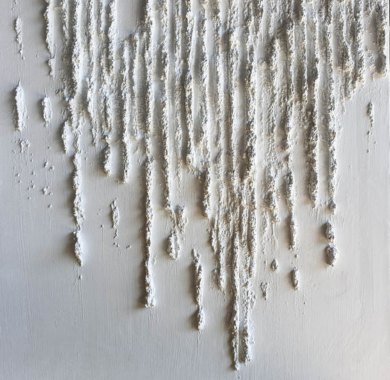 Rain Drops is a refined exploration of rhythm, light, and surface. Delicate vertical lines descend from the upper edge of the canvas like a silent, suspended rainfall, creating a sense of continuity, flow, and quiet movement. The composition is both minimal and deeply tactile, where repetition becomes gesture and gesture becomes structure.