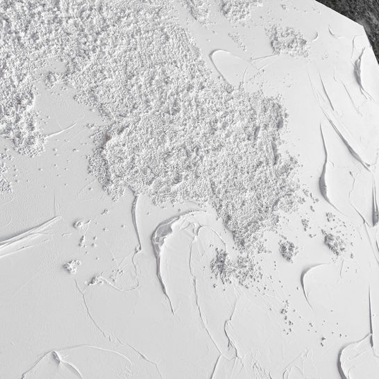 Two distinct textures, meticulously sculpted with a spatula, create a subtle interplay of depth and materiality, enhanced by the delicate presence of marble grit within the surface.