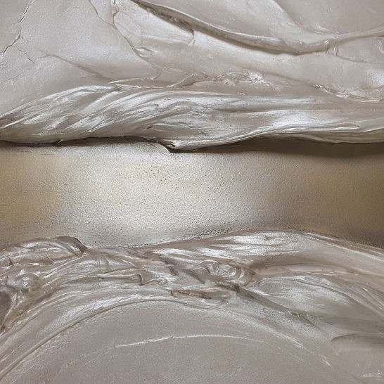 This piece is an exploration of flow, stillness, and reflection. The river becomes a meditative presence, a passage through which light travels and transforms the space around it. Each raised form and textured layer is intentionally visible, inviting the viewer to linger, to observe the subtle interplay of material, depth, and luminosity.